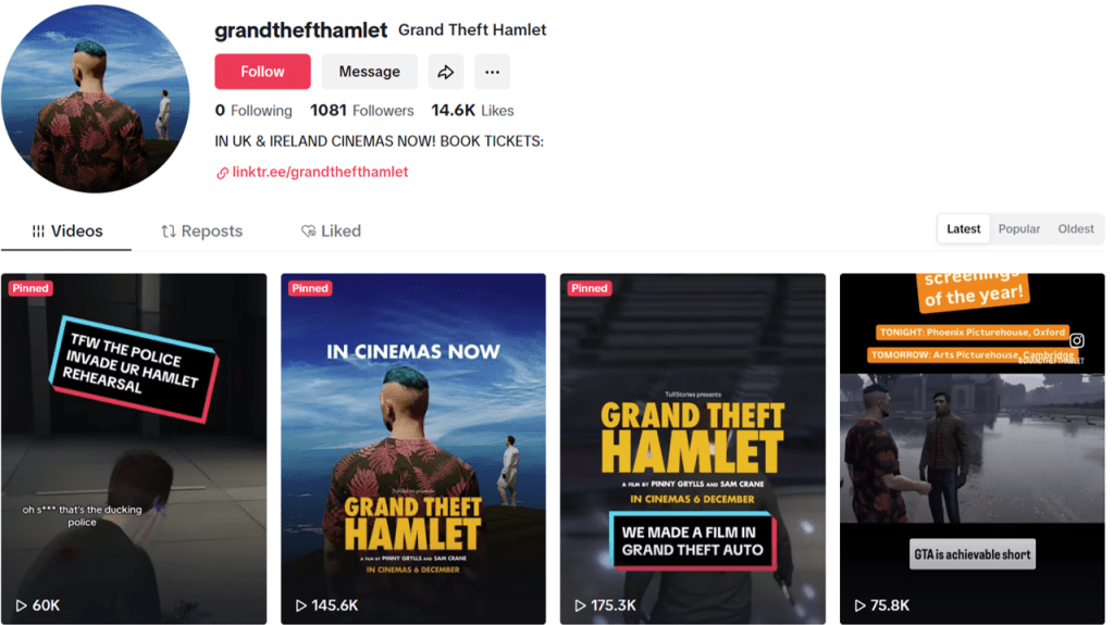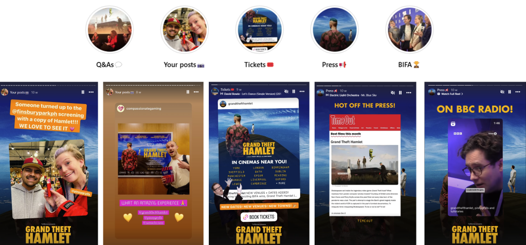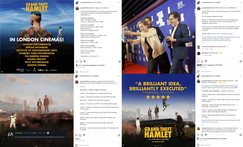 I was commissioned by the producers and theatrical distributor of Grand Theft Hamlet, to manage the film’s social media presence during its UK and Ireland theatrical window. This highly anticipated documentary screened at over 50 venues nationwide between November 2024 and January 2025.
